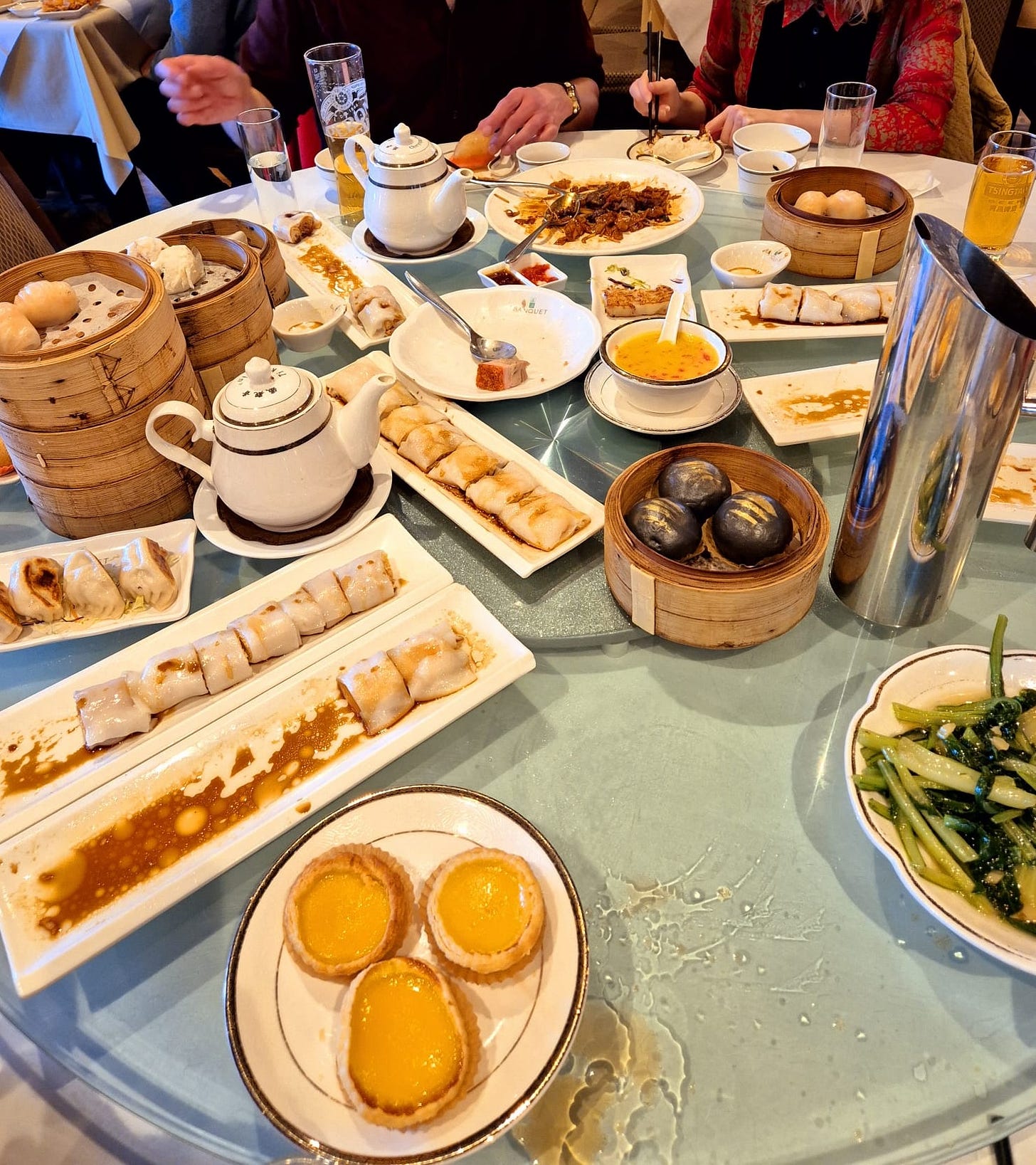 The dim sum chefs from Banquet Chinese returned from their several-months long trip back to China two weeks ago, and so dim sum was finally back on the menu. To celebrate and to make NYE fun despite not going out at night (we have a 1 year old child and I am almost 9 months pregnant) I booked a table at lunch with friends. We all feasted to our heart’s content, and Ursula had so a lot of fun dancing, chatting to waiters, and eating cheung fun and exquistely moist roast pork with crispy skin. (nb, my colleague Jonathan Nunn, founder of Vittles where I work as an editor, declared that Banquet made the best dim sum he’d had all year).
