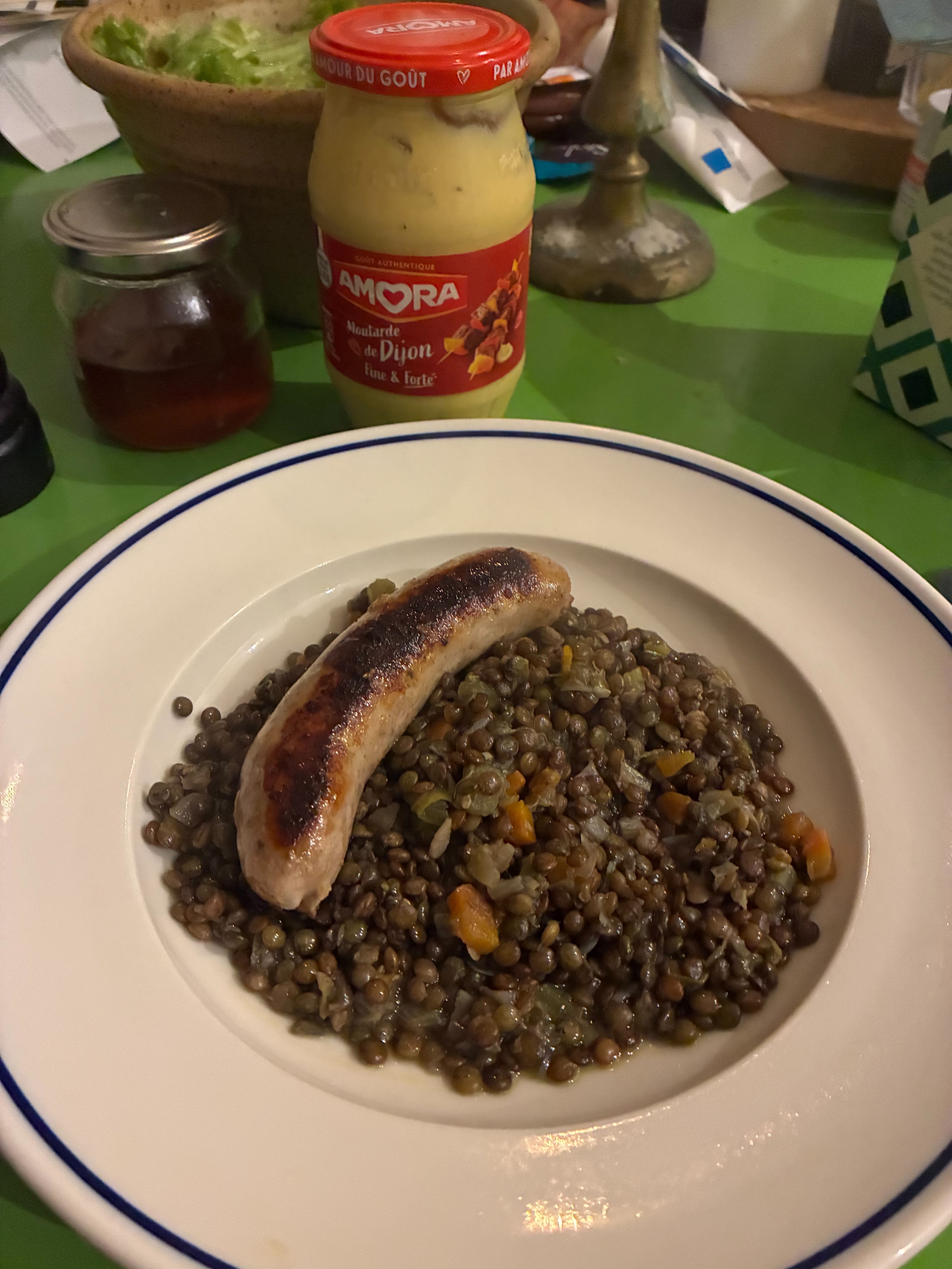 Last night I cooked Rachel Roddy’s lentils from her masterwork of a debut cookbook, Five Quarters - Recipe and Notes from a Kitchen in Rome. The time spent fastidiously chopping the leeks, carrot, onion, celery and garlic very finely was really worth it – as was keeping a keen eye on the cooked-ness of the lentils as instructed. We ate the lentils with sausages as Rachel does, and I made a salad with some very good lettuce from our veg box, dressed as I love to do, with a generous amount of lemon juice squeezed directly into the lettuce just before serving with olive oil, salt and pepper and tossed very well. I made the full batch of lentils for two of us so there was a good amount left over – and we will have more lentils this evening, warmed through and served with a baked camembert, some more sharply dressed lettuce, and my mother’s quince jelly.