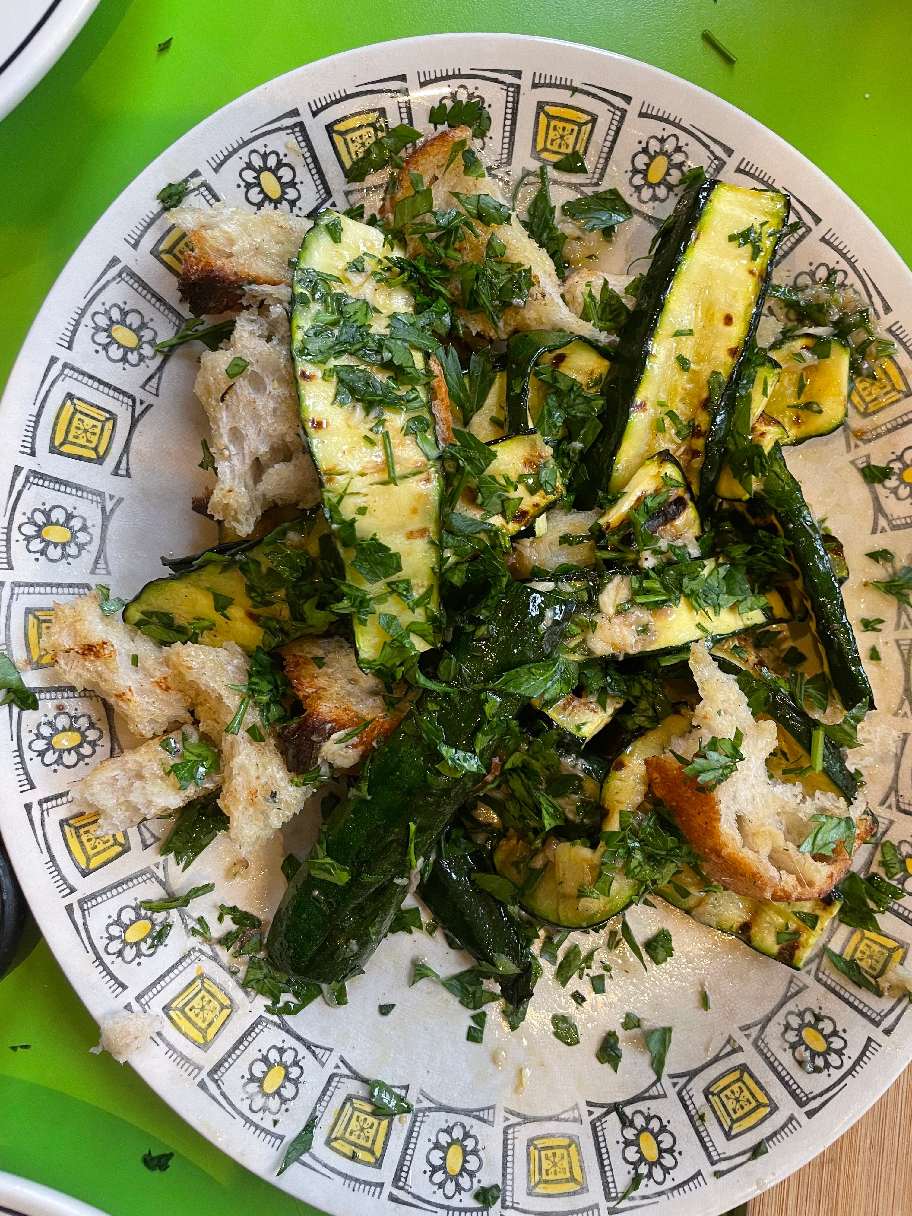 Courgette and bread salad with anchovy dressing